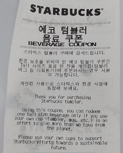 텀블러 쿠폰은 스타벅스에서 텀블러를 구매할 경우 사은품으로 제공되는 쿠폰입니다.