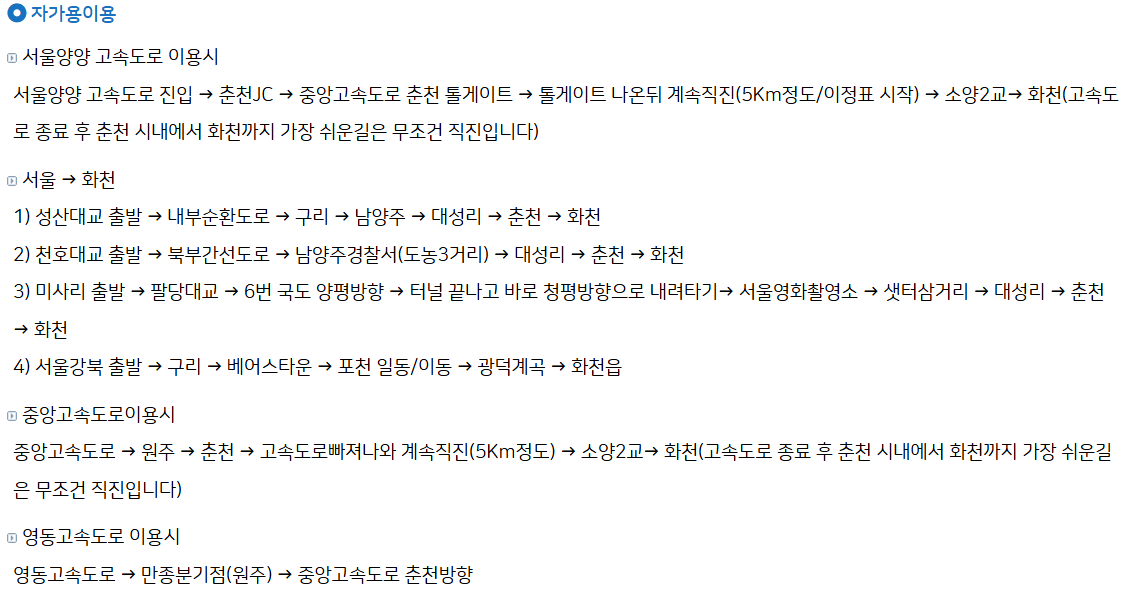 자가용 이용 시, 주말 및 공휴일에는 혼잡이 예상되므로 일찍 출발하시는 것이 좋습니다.
